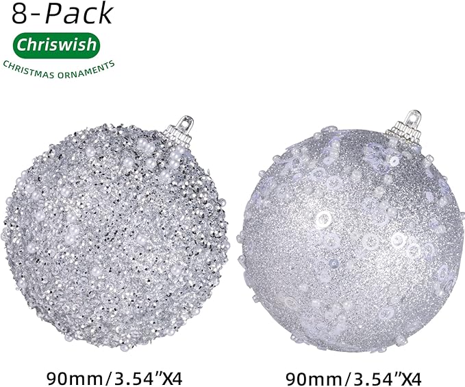 - HIGH CAPACITY -8Pcs Xmas ball ornaments size is 90mm/3.54"in diameter. It's the standard for Christmas