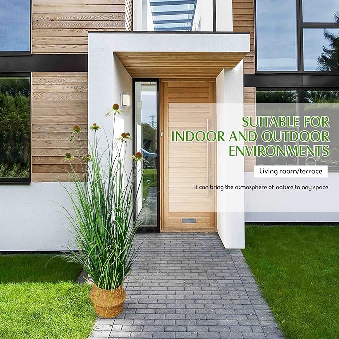 46-Inch Artificial Grass Plant with 9 Lifelike Echinacea Flower - Perfect for Indoor or Outdoor Decoration, Housewarming Gifts, Fake Grass Decor, and Floor Plant (2-Pack)