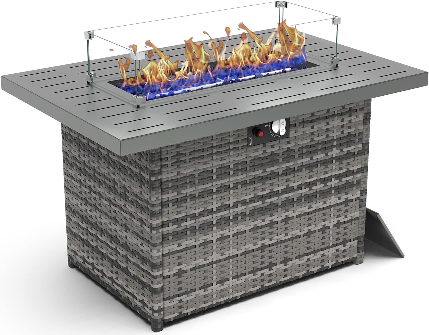 - WHAT YOU WILL GET: Our fire pits table for the outside come with all the accessories you need to install or use, including a rectangular fire pit table, a wind guard, a waterproof cover, a removable lid, and blue glass stone.