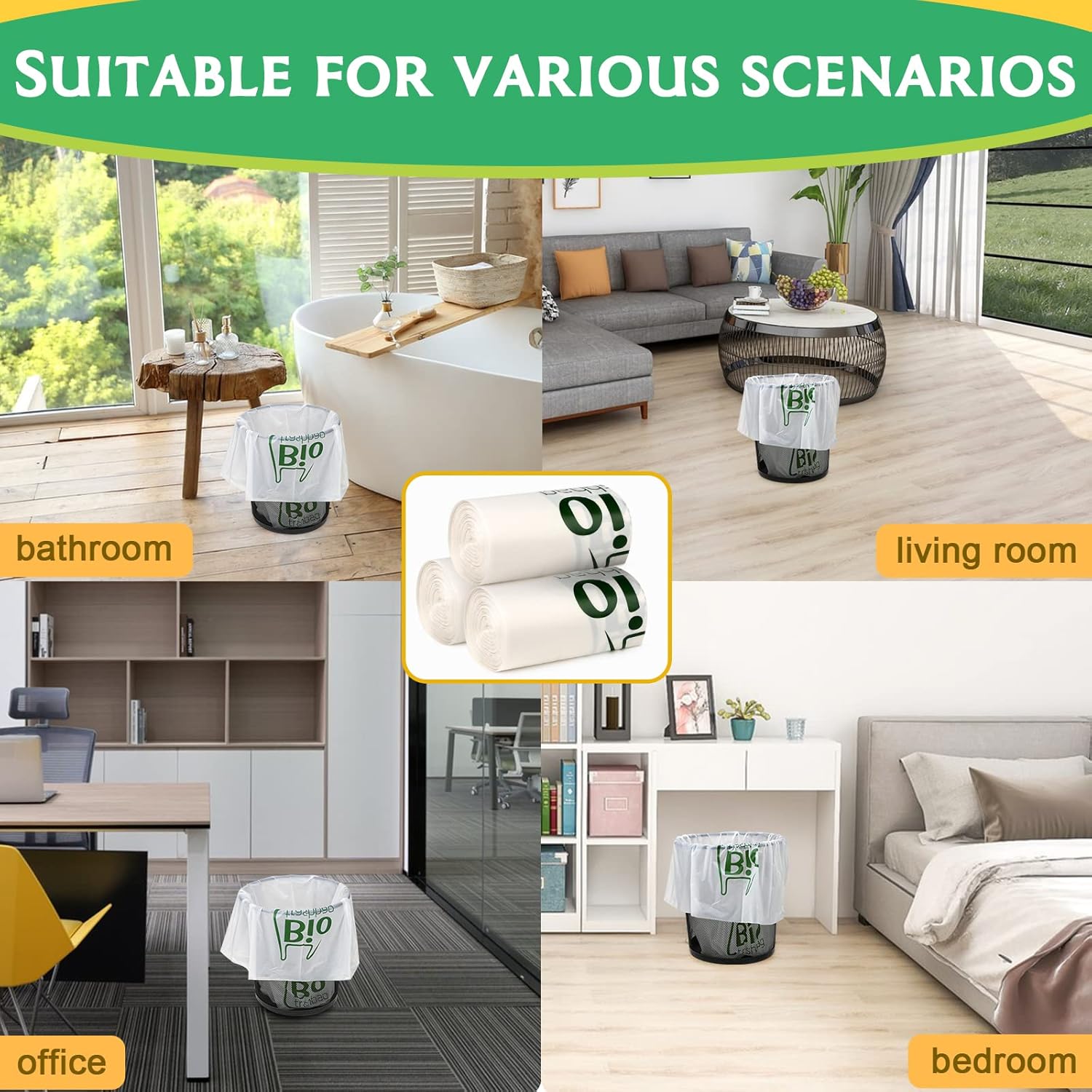 - Biodegradable Garbage Bags: BPI certified compostable bags,kitchen compostable garbage bags meeting US ASTM D6400 & EU EN 13432 standard. Made of cornstarch and renewable plant starch materials, it will decompose in the soil after 6-12 months