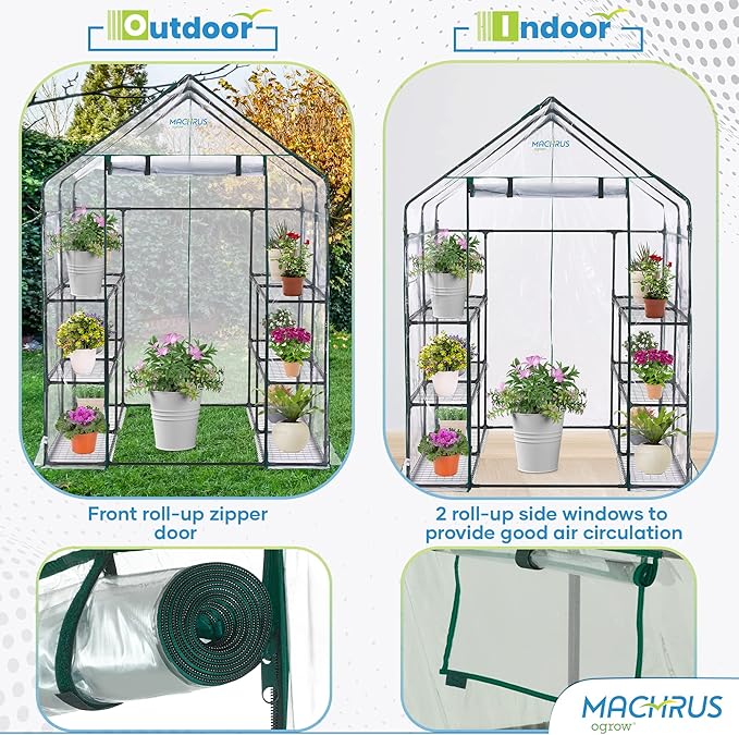 - Beautify your Indoor Outdoor Landscape: The Ogrow portable greenhouse has versatility and effectiveness to work well both indoor and outdoor. No need to worry about damaging your beloved plants due to unexpected cold snaps or heavy rain as our greenhouse kit will be battling with snow, frost, and heavy storms, so grow your mini greenhouse shelves with sprouting plants and blooming flowers in your backyard, balcony or the basement