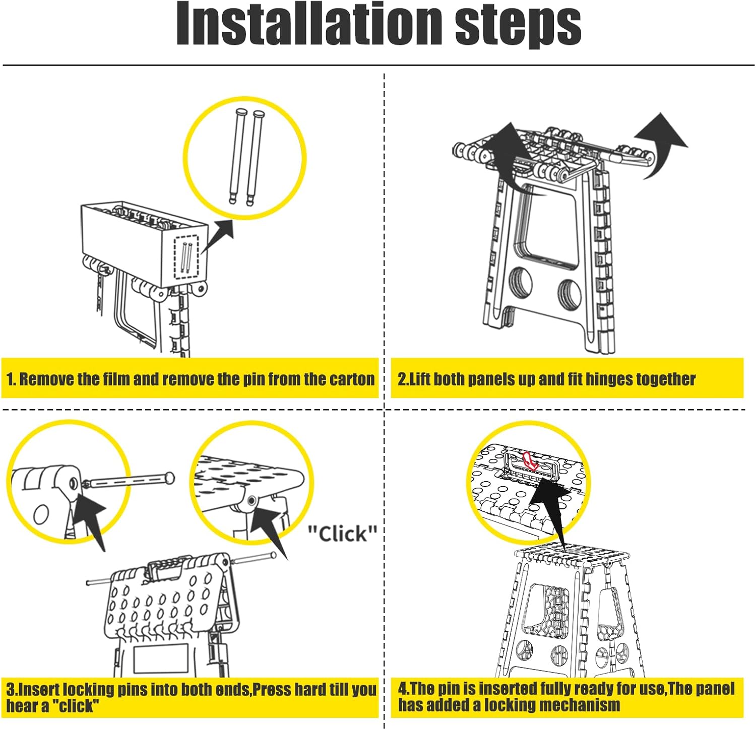 - Loads Up to 400lbs : The internal structural design 17.5 inch Folding Stool in Black is unique makes the step stool extra strong and safe. It can hold up to 400 lbs Max !!! Which is mainly used for adults indoor sitting. Please make sure the step stool is fully opened before use.Note: The size is measured manually, there may be a measurement error of 1-3cm
