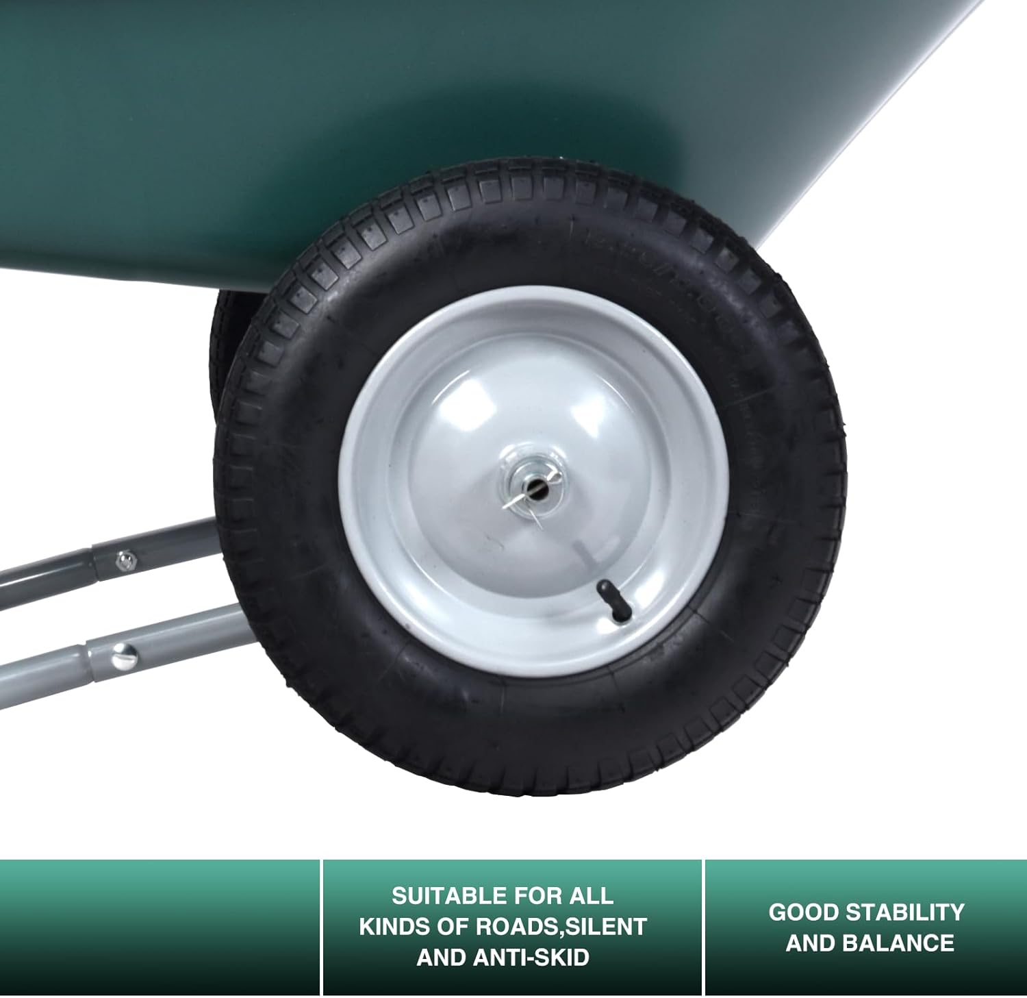 ARNOT Enlarged Dual-Wheel Wheelbarrow, Easy Loading and Dumping Garden Cart, Heavy Duty Utility Dump Cart for Lawn, Yard, Farm, Gardening & Planting, Green