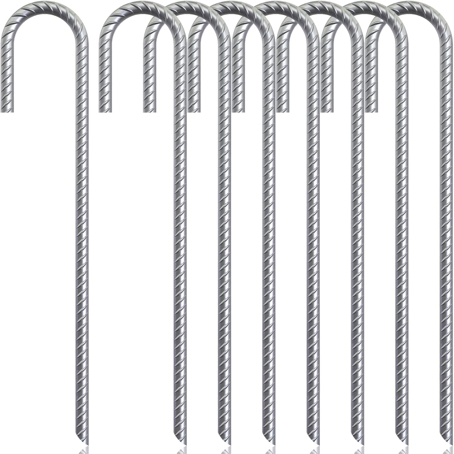 ASDFGHT J Hook Rebar Stakes 12 & 16 Inch (Black or Silver), Heavy Duty Professional Quality Ground Anchors for Chainlink Fence, Sports nets, Camping, Trampolines, Irrigation Pipes and Garden