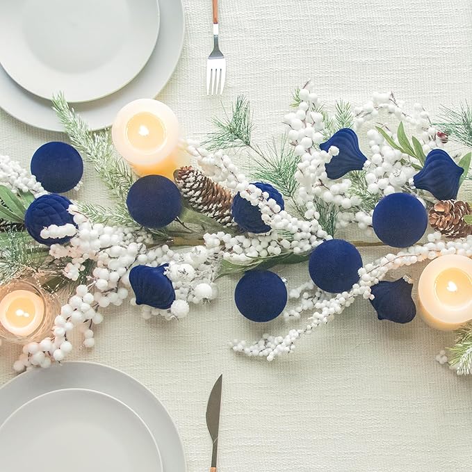 KI Store Velvet Christmas Balls Blue 25pcs Flocked Christmas Tree Ornaments Assortment for Xmas Tree Holiday Decor