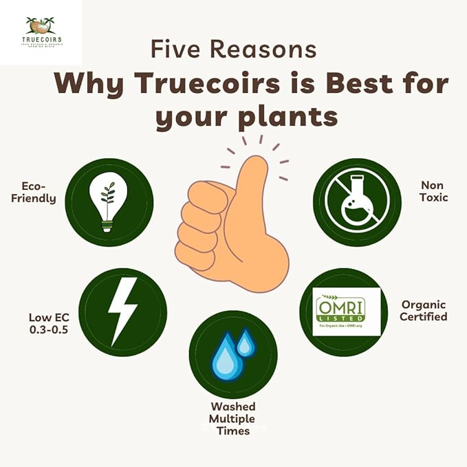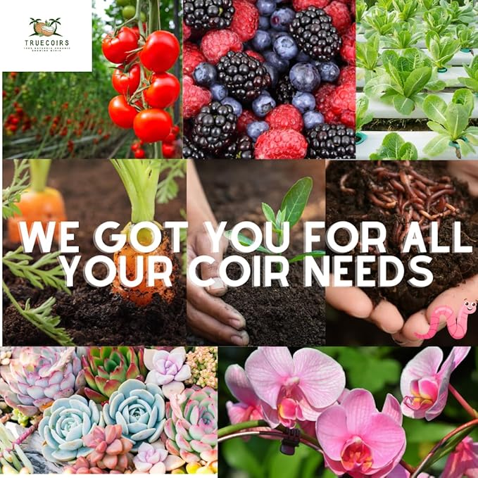 - π GREENER CHOICE: At TrueCoirs, we are committed to providing you with a greener alternative for your gardening needs. Our Coco Peat is 100% organic and natural, ensuring a sustainable solution for your plants and the environment.