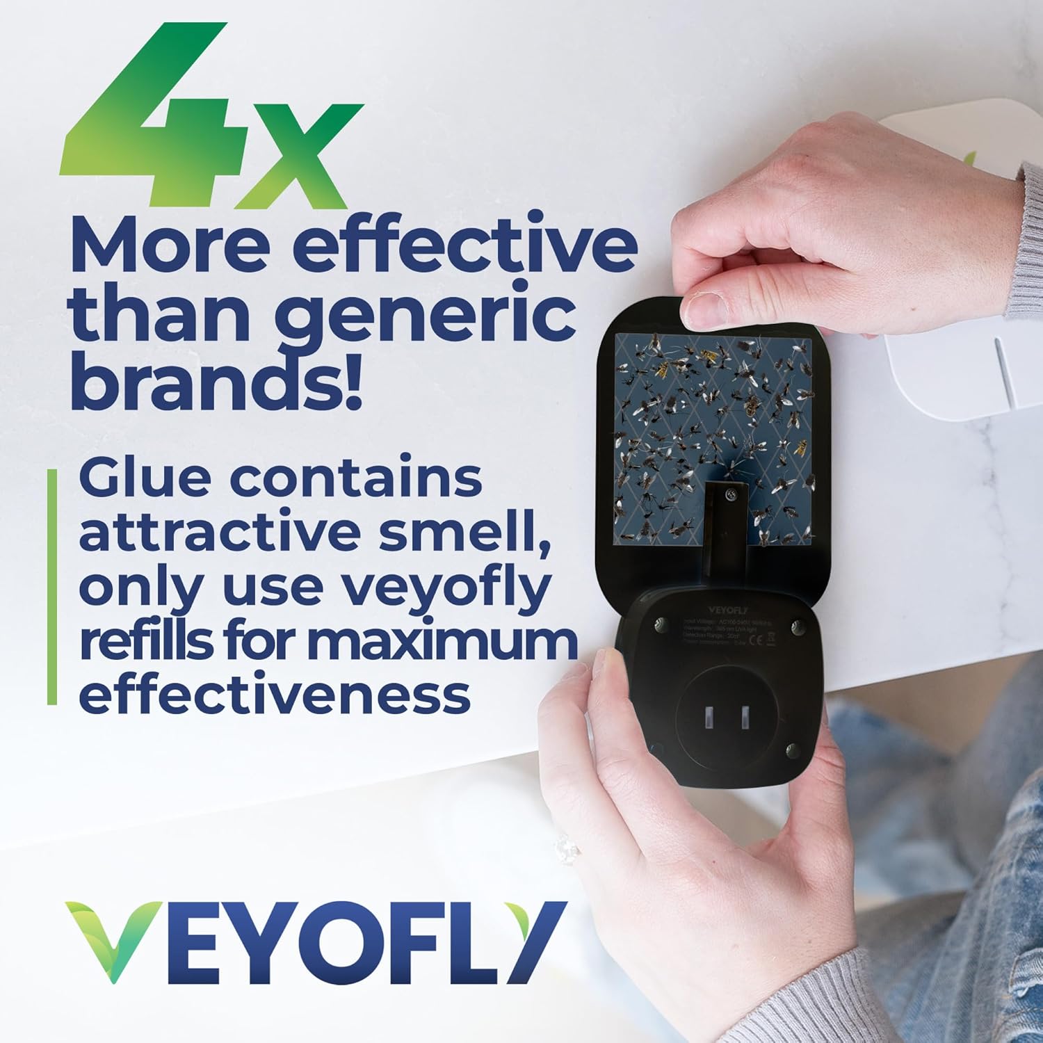 - POWERFUL GLUE BOARDS - Veyofly glue boards are coated with ultra strong adhesive glue, making it impossible for insects to escape. Just peel off the protective cover, insert the glue plate into the device and watch your area become free of flies. Additional glue boards are available and can be ordered from Amazon.
