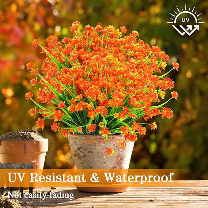 - Realistic Artificial Flowers - Fall Flowers are made of PE plastic(ECO-Friendly) and high-quality silk cloth,100% SAFE.Each flower come as close to real as can be, offer true-to-life petal and foliage textures.Honestly unless you stop and touch them people will think they're real,they even fooled the bees