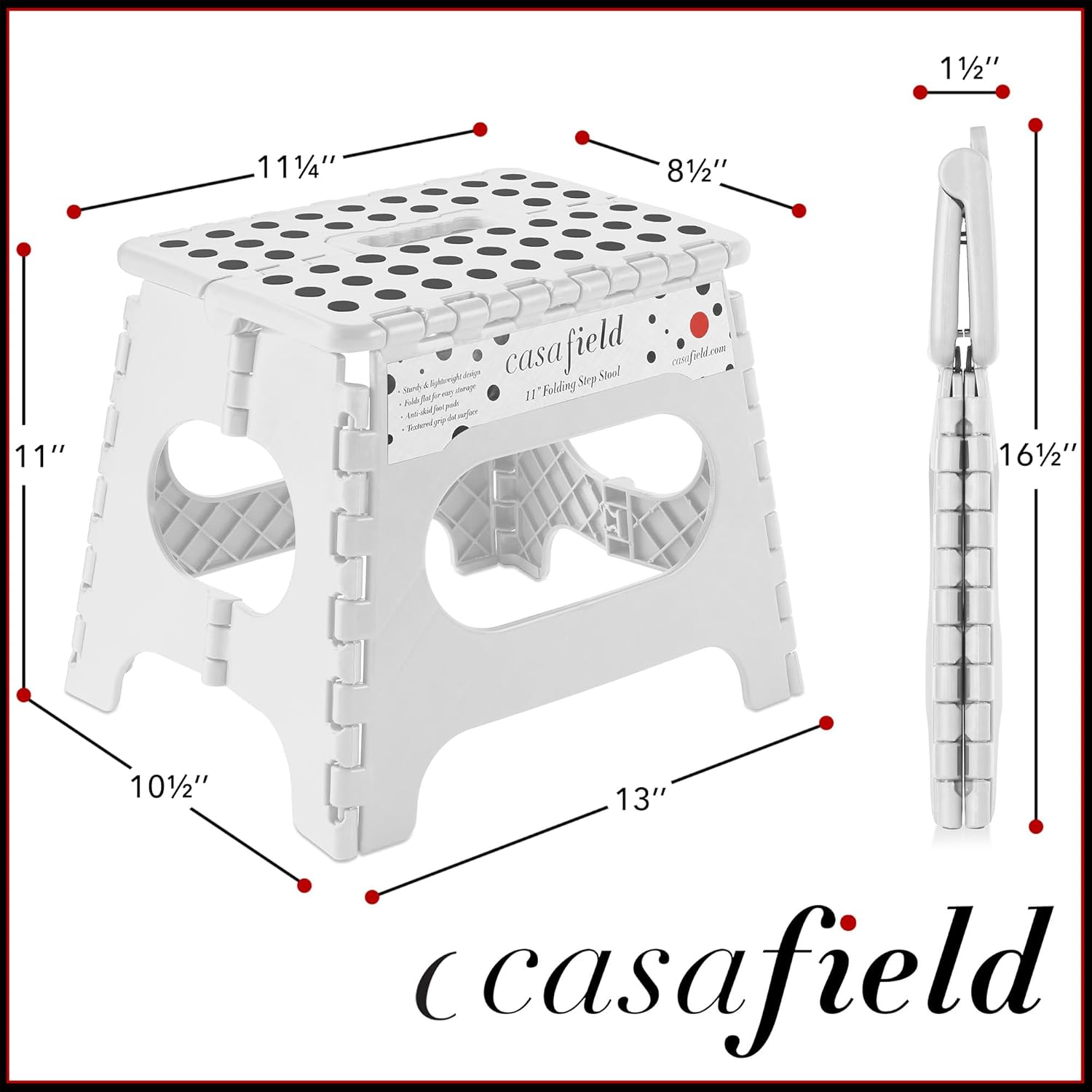 Casafield 11" Folding Step Stool with Handle, White - Portable Collapsible Small Plastic Foot Stool for Kids and Adults - Use in The Kitchen, Bathroom and Bedroom