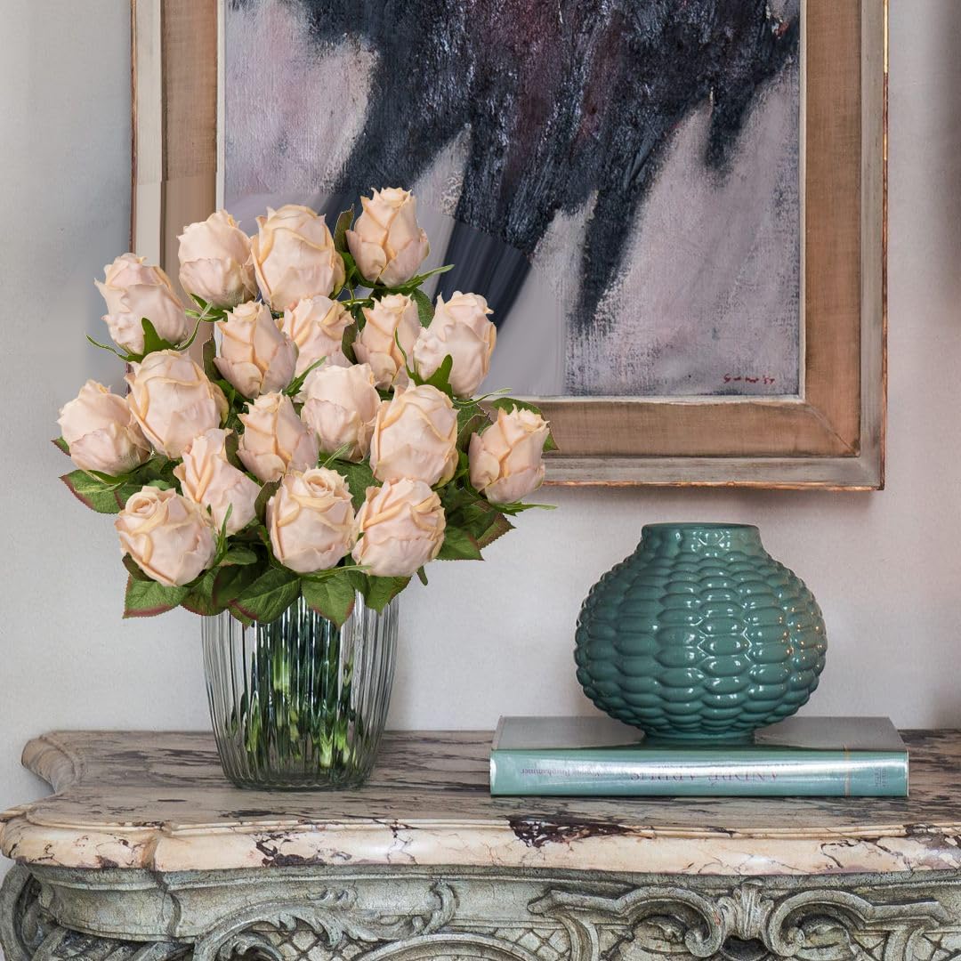 - ๐น REAL TOUCH FABRIC - This real touch roses artificial flowers are made of special smooth velvety feel fabric Instead of silk, combining special craftsmanship to make artificial roses with stems fresh touch and soft petals. This material is eco-friendly, weatherproof,non-toxic and has no abnormal odour.Our artificial single rose are so beautiful and perfect you will truly think they are real
