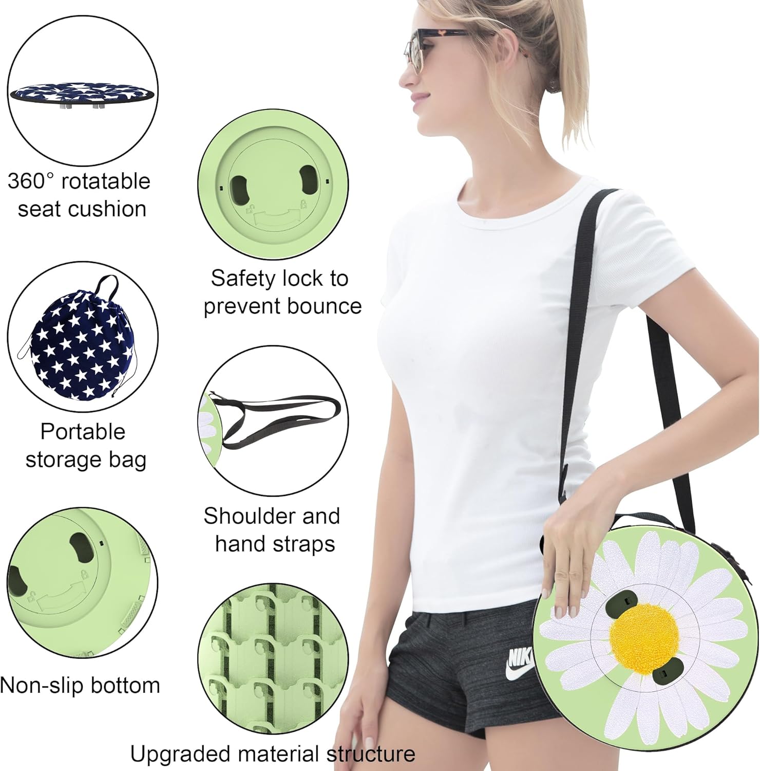ALEVMOOM Upgraded Telescoping Collapsible Stool with Cushion, Folding Stool with Printing Portable Retractable Foldable Seat Max Load 600lbs for Adults Camping Fishing Outdoor