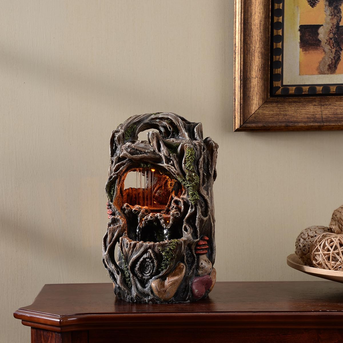 Tabletop Water Fountain, Home Décor Soothing Sound Machine with Automatic Pump, Nature Tree Stump Resin and for Indoor Zen Relaxation for Office, Living Room, or Bedroom Décor