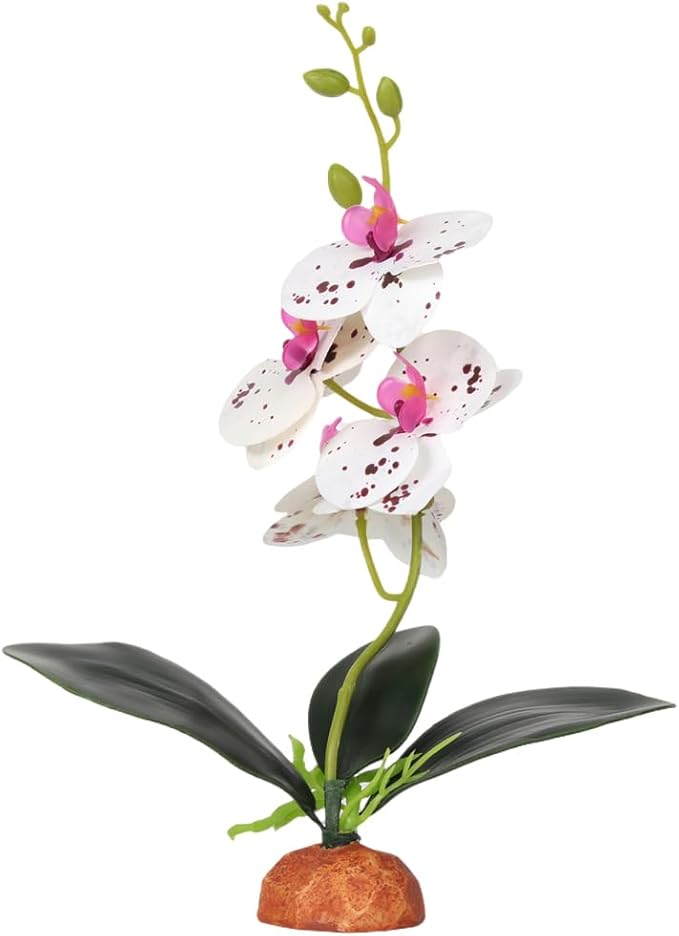 Fake Orchids Artificial Flowers, Reptile Terrarium Decor Plants, Bearded Dragon Tank Accessories fit Crested Gecko Leopard Lizard Chameleon Ball Python Snake Frog - Spotted