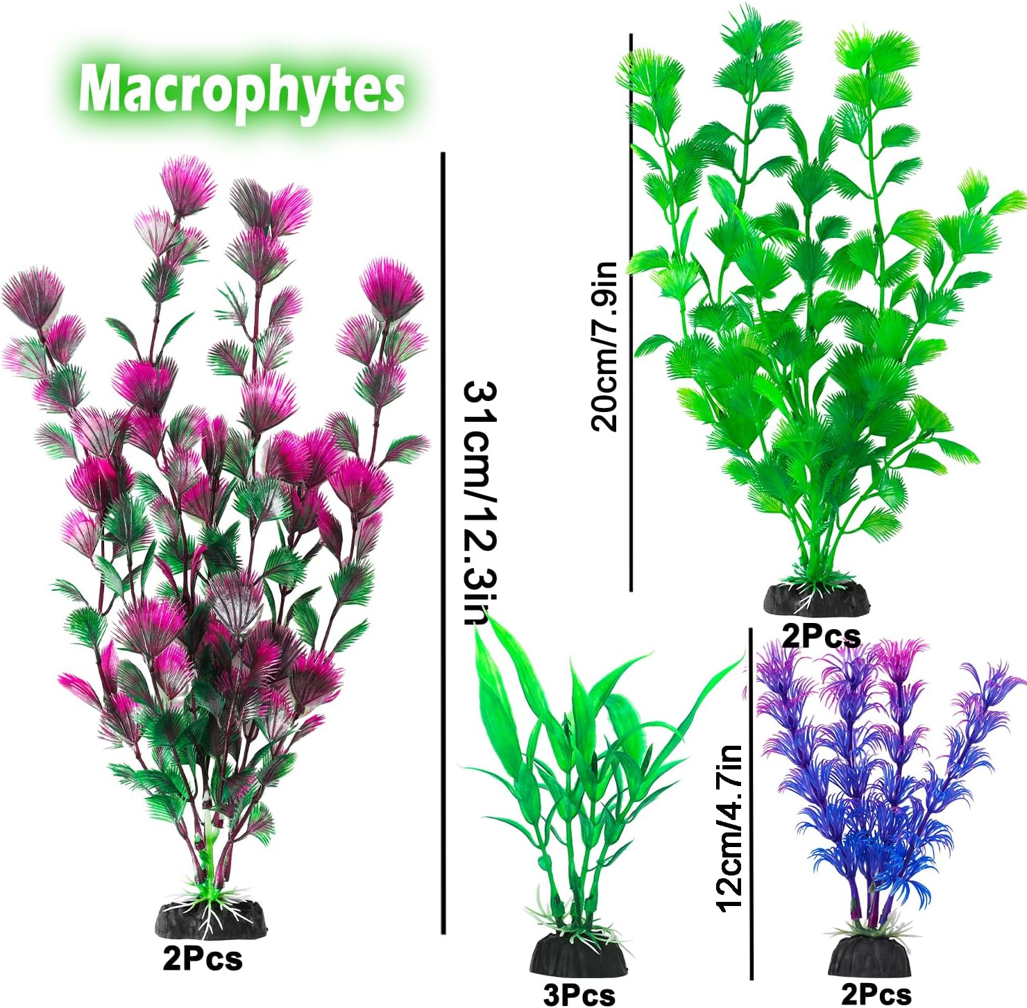 - 30aquarium plants, 15different styles, Various Heights 6 to 31 cm. ( 2.4 inch to 12.3 inch ), perfect for aquariums and fish tank decorations