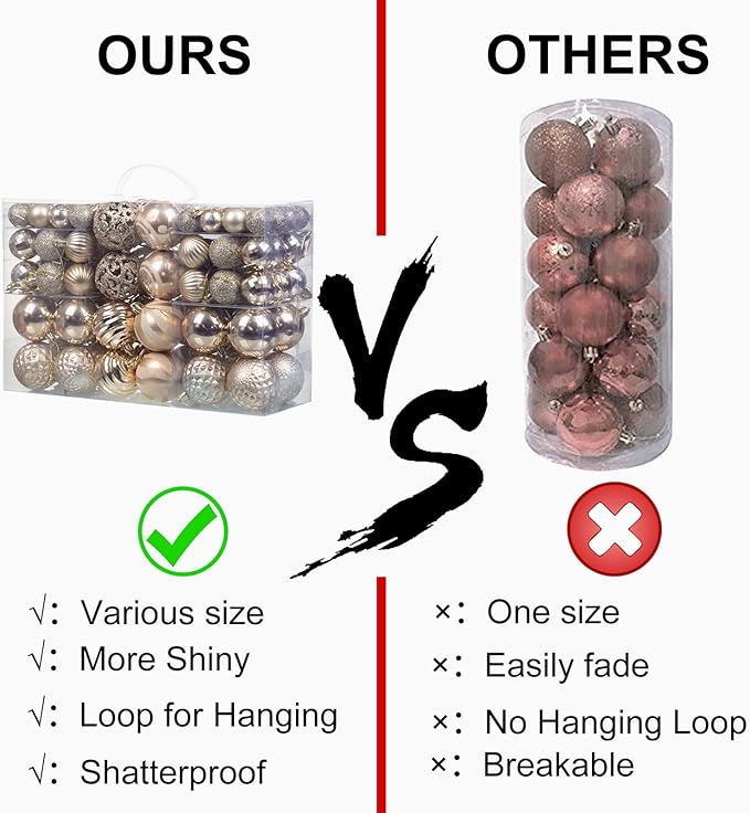- Buy with Confident: All our Christmas ball ornaments are guaranteed by quality. Take your confidence to choose us. If there are any problems with our products, please contact us at the first time, we support unconditional return and exchange. Merry Christmas!