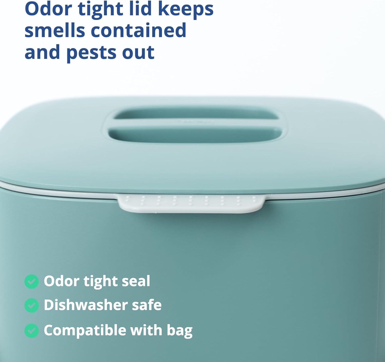 - CONVENIENT MODERN DESIGN - This countertop compost bin for kitchen waste makes composting food scraps easier and more convenient. Sturdy, easy to clean, and lightweight, they feature a tight sealing lid that helps keep odors in and bugs out and a handle on the bin for a cleaner disposal experience.