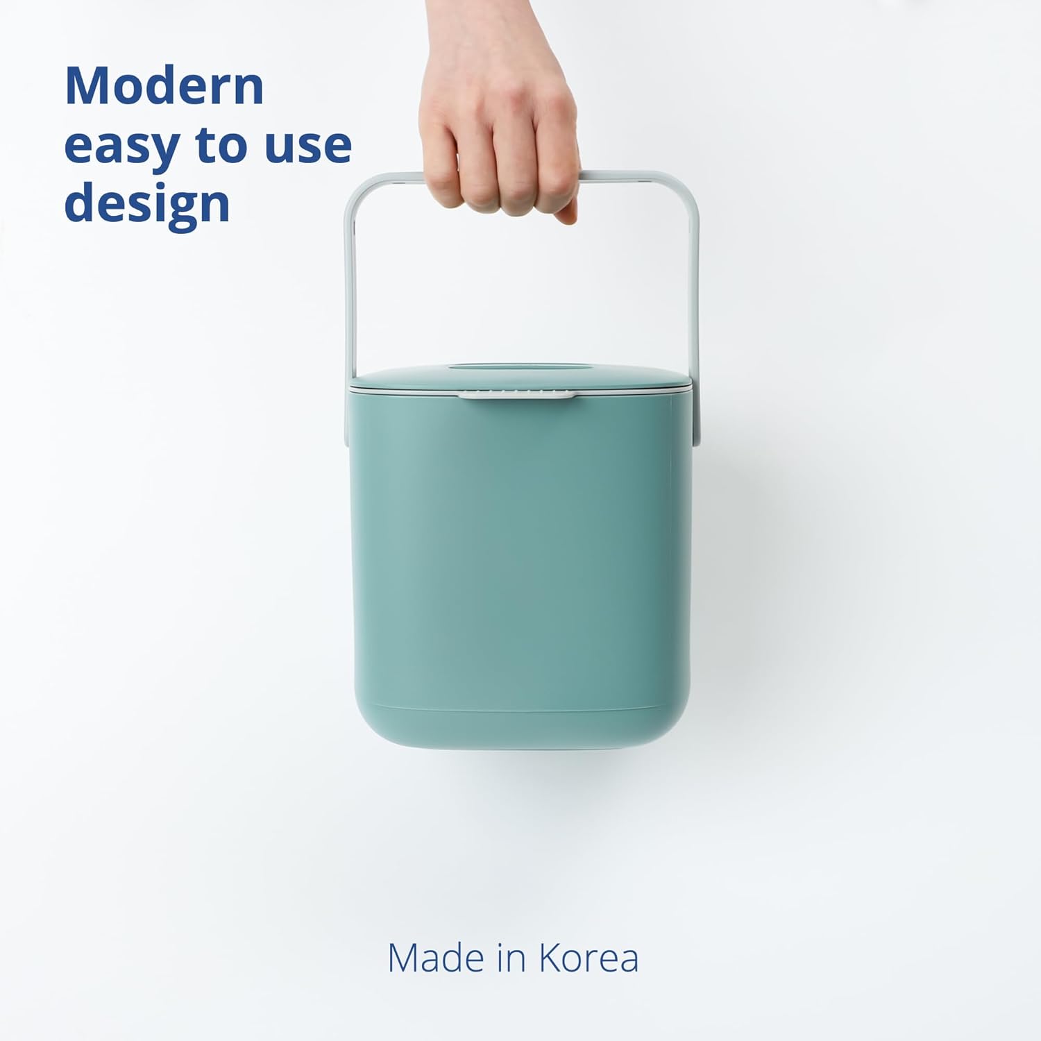 - EASY CLEANING - Made in South Korea from easy-to-clean dishwasher safe plastic, the inside of this indoor compost bin is smooth to prevent food waste from sticking, and the inner basket is removable, making cleaning a breeze. Whether you hand wash this food scrap bin or place it in the dishwasher, a clean compost pail is just a few minutes away.
