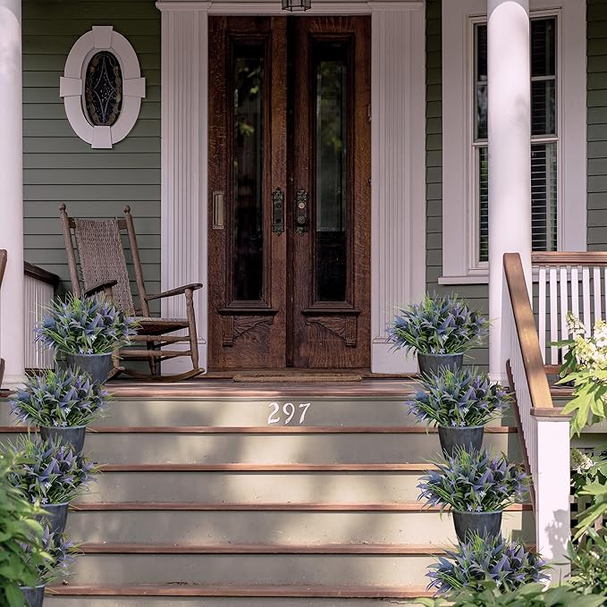 8 Bundles Artificial Plants Bushes Outdoor UV Resistant Fake Flowers Grass Bulk Faux Plastic Greenery for Fall Winter Summer Outside Window Box Planter Front Porch Yard Floral Arrangements