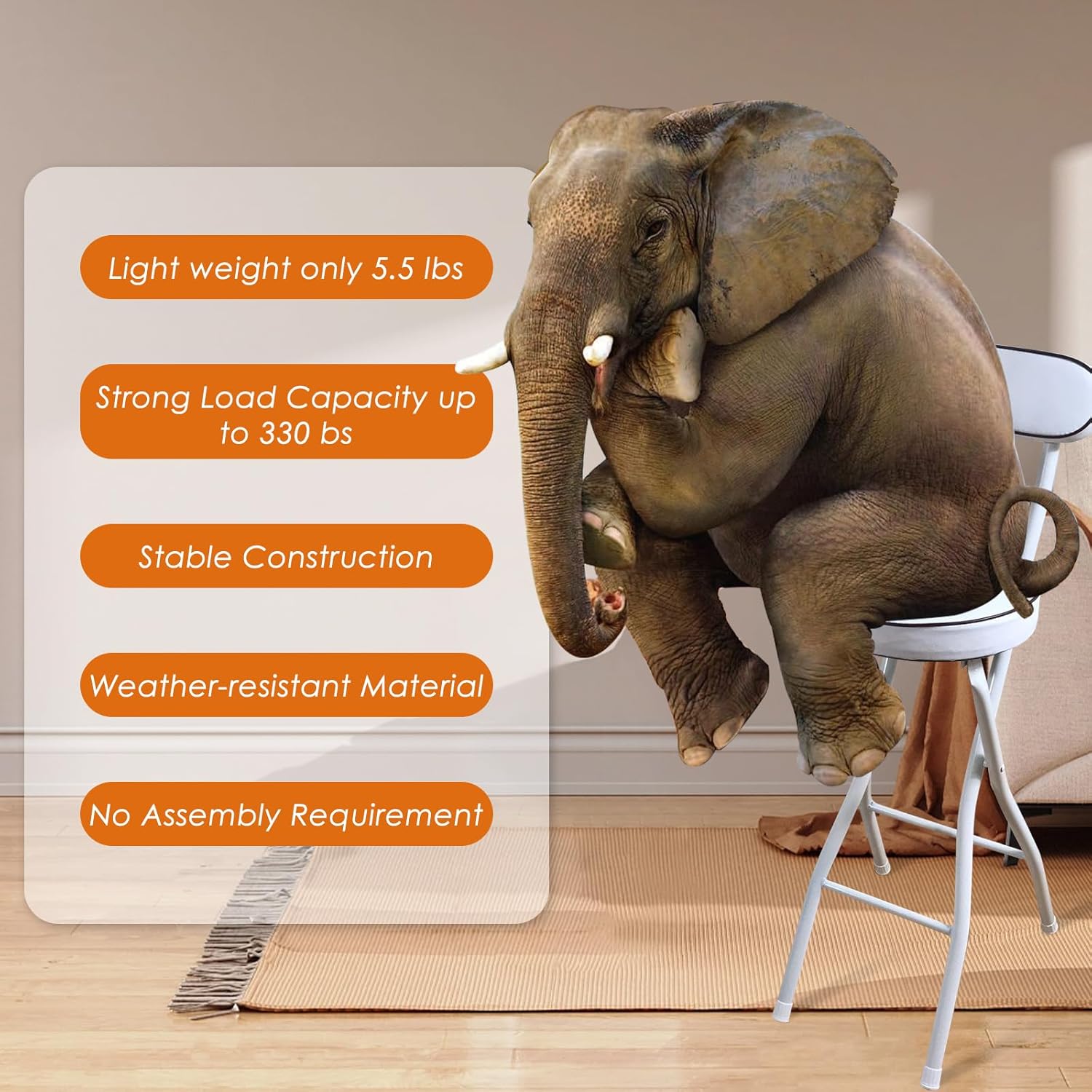 - FOLDING BAR STOOL: One folding stool weighs about 3KG, cushion distance from the ground 25.5 inches, cushion diameter 12 inches.Folding stools are designed for easy storage and portability,Solid construction comfortable seat and back support