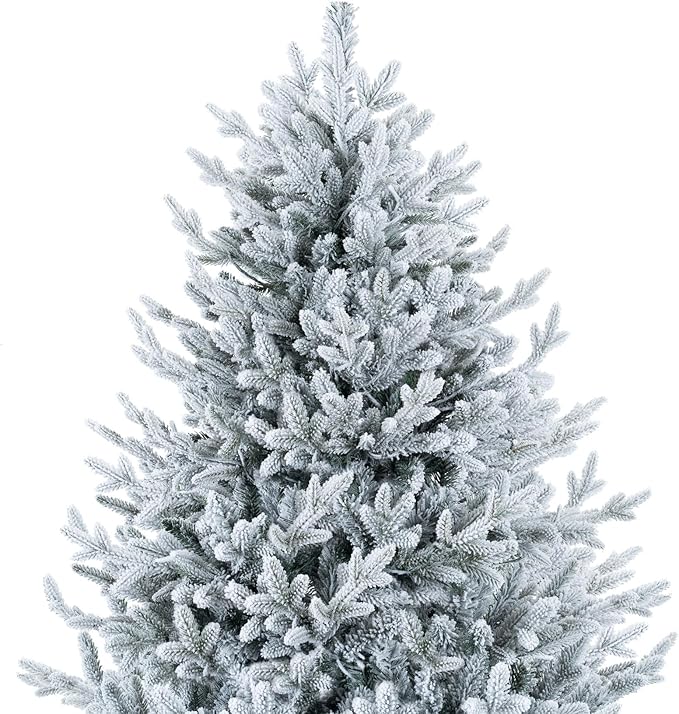 - SNOW FLOCKED TREE : The 6.5 feet Frosted Christmas Tree is lush and full appearance breathes life into your festive atmosphere. The gentle white frosted tips, warm LED lighting, and lifelike pinecones provide a cozy and inviting feel, filling the winter season with warmth. Furthermore, its pre-lit design ensures easy setup and storage, adding to your convenience during the holidays. Arbol de Navidad con luces.