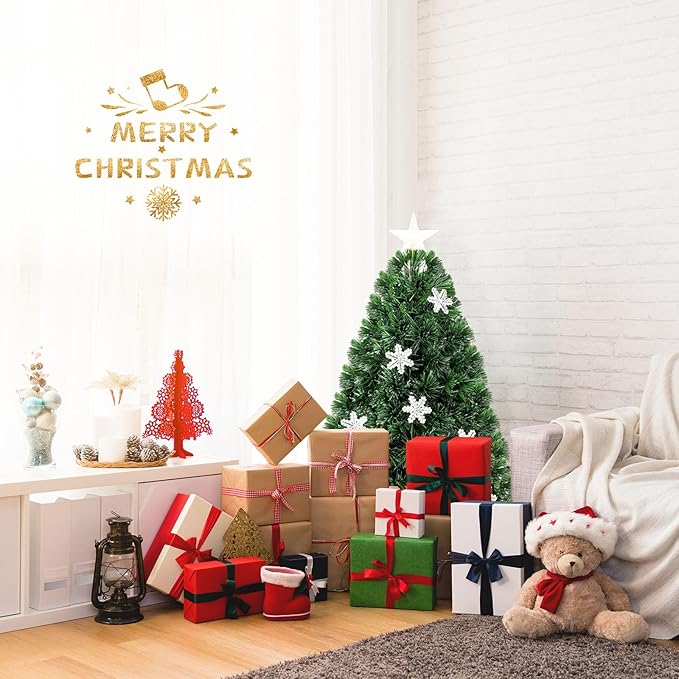 - Fiber Optic Christmas Tree: This 3ft pre-lit optical fiber artificial Christmas tree features a colorful appearance, complete with 12 UL-certified LED lights and snowflakes that can be easily attached. The tree is designed with ultra-realistic 85 PVC branches tips, allowing for a full and lush look after fluffing. There is also plenty of space to hang various ornaments according to your preference.