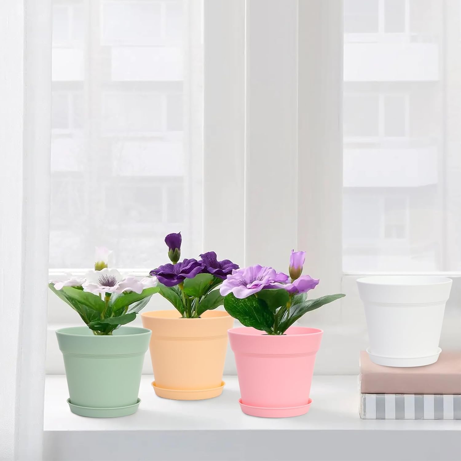 - 【Environmental Material】Made of durable recyclable plastic,solid plastic plant pots protect plants and soil. Premium polypropylene planters feel sturdy in hand but not too heavy. Thick sidewalls 4mm in size keep everything in place.
