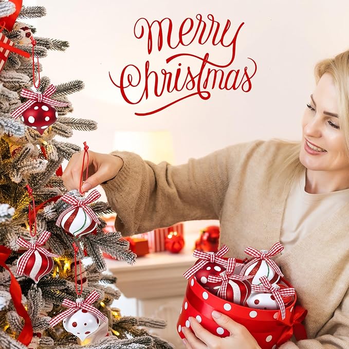 - Elaborate Design: the package comes with 24 Christmas tree ornaments in 4 different styles, each style with 6 pieces; Bright strips patterns are emblazoned on the surface, accompanied by a decorative checkered bow, making them ideal for Christmas and holiday parties