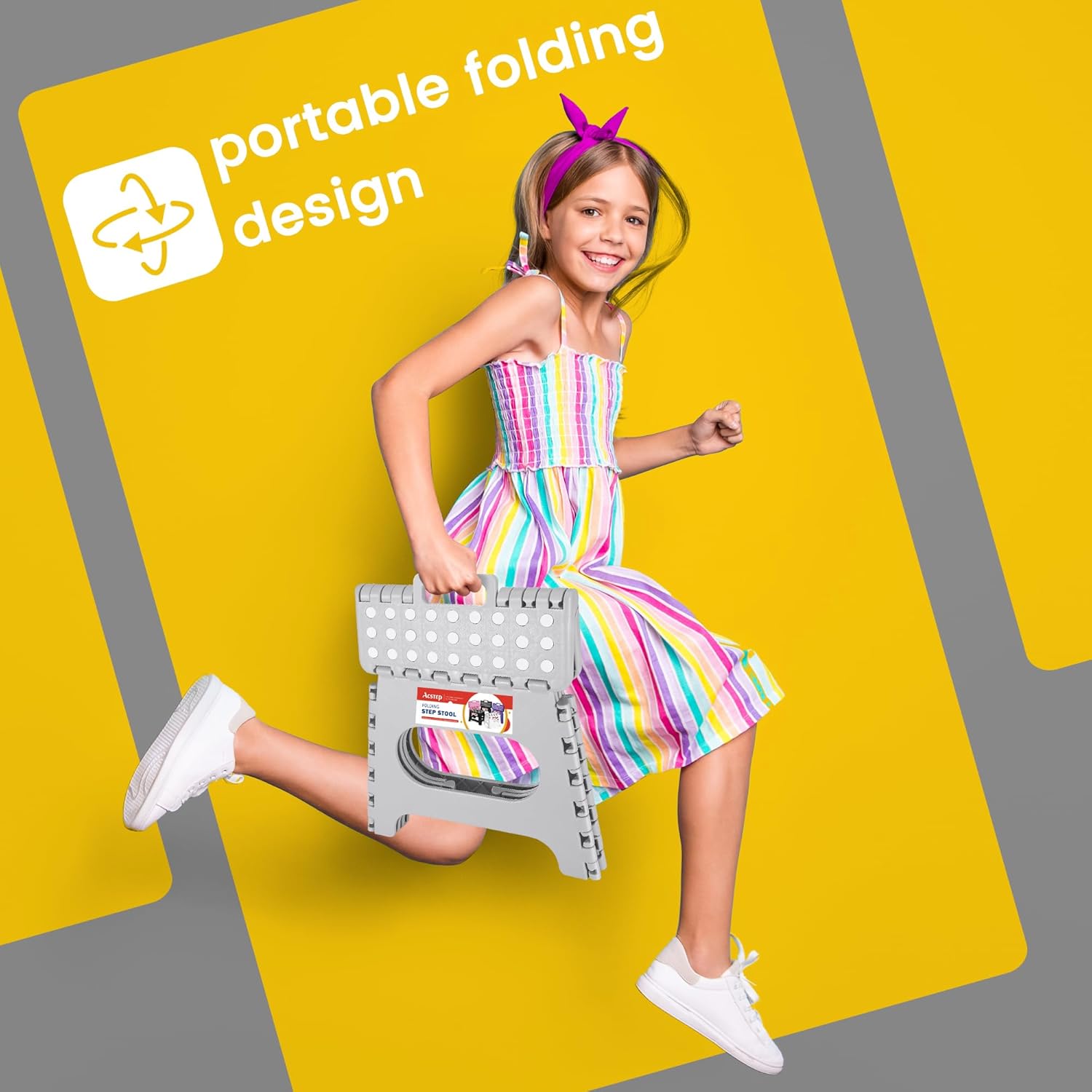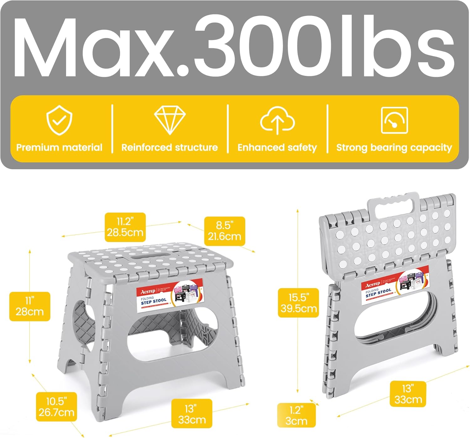 ACSTEP Folding Step Stool 11'' Foldable Step Stool for Kids and Adults Up to 300 lbs, Non-Slip Folding Stools with Portable Handle for Bedroom Kitchen, Bathroom Grey
