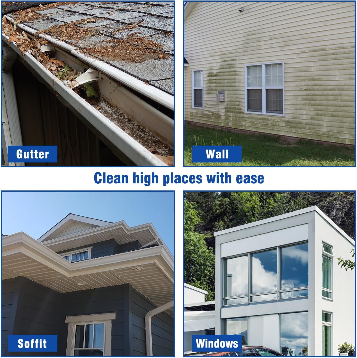 - PROFESSIONAL TELESCOPING WAND - The RAYNEL telescoping extension wand with 5 stage design provides up to 24 feet of additional reach, no ladder needed. Equipped with brush head and 3 kinds of extension wands, it can easily reach gutters, soffits, fascia & siding.