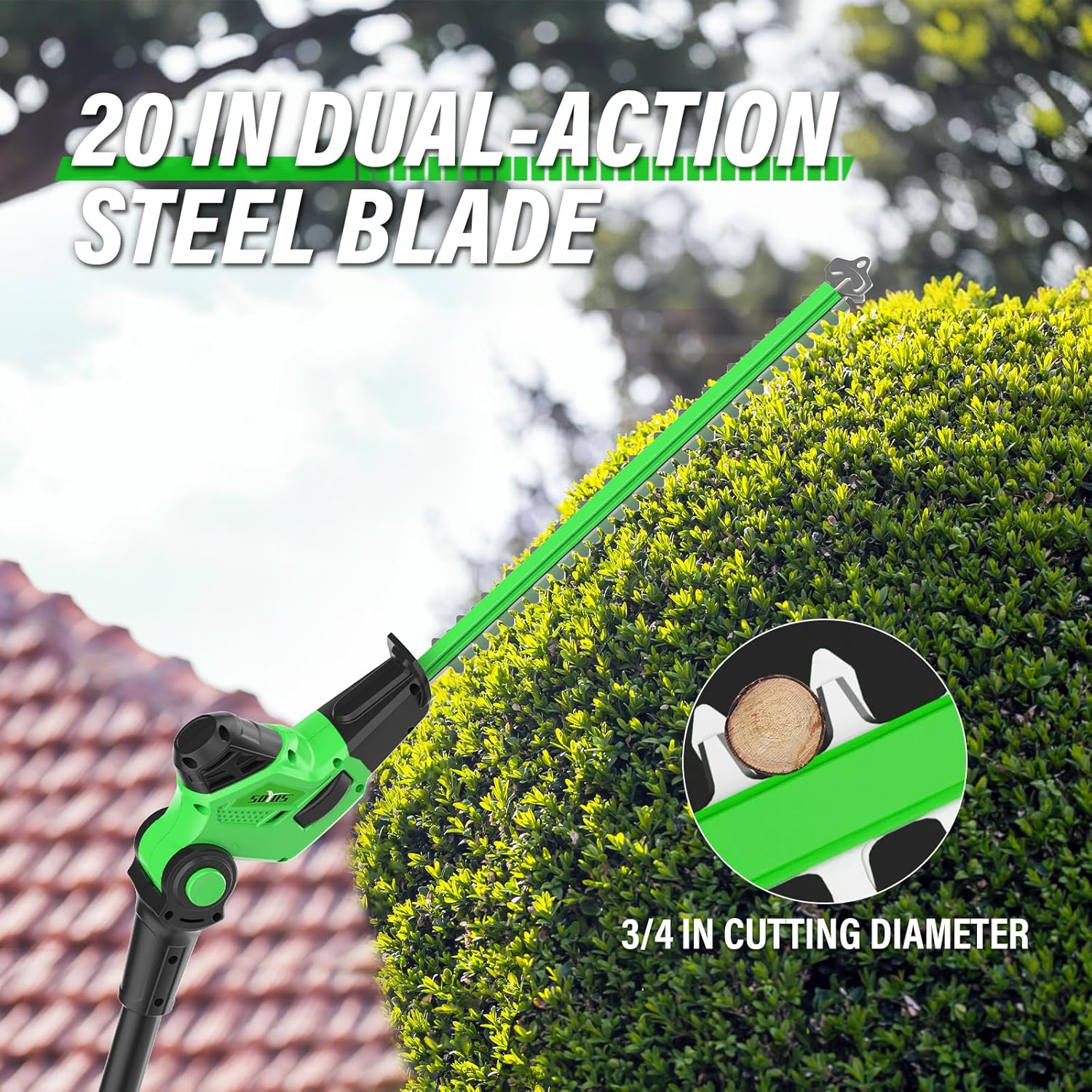 SOYUS Pole Hedge Trimmer Cordless, 18-inch Electric Hedge Trimmer with Extension Pole, 15-Foot Max Reach, Multi-Angle, 2.0Ah Battery and Charger Included