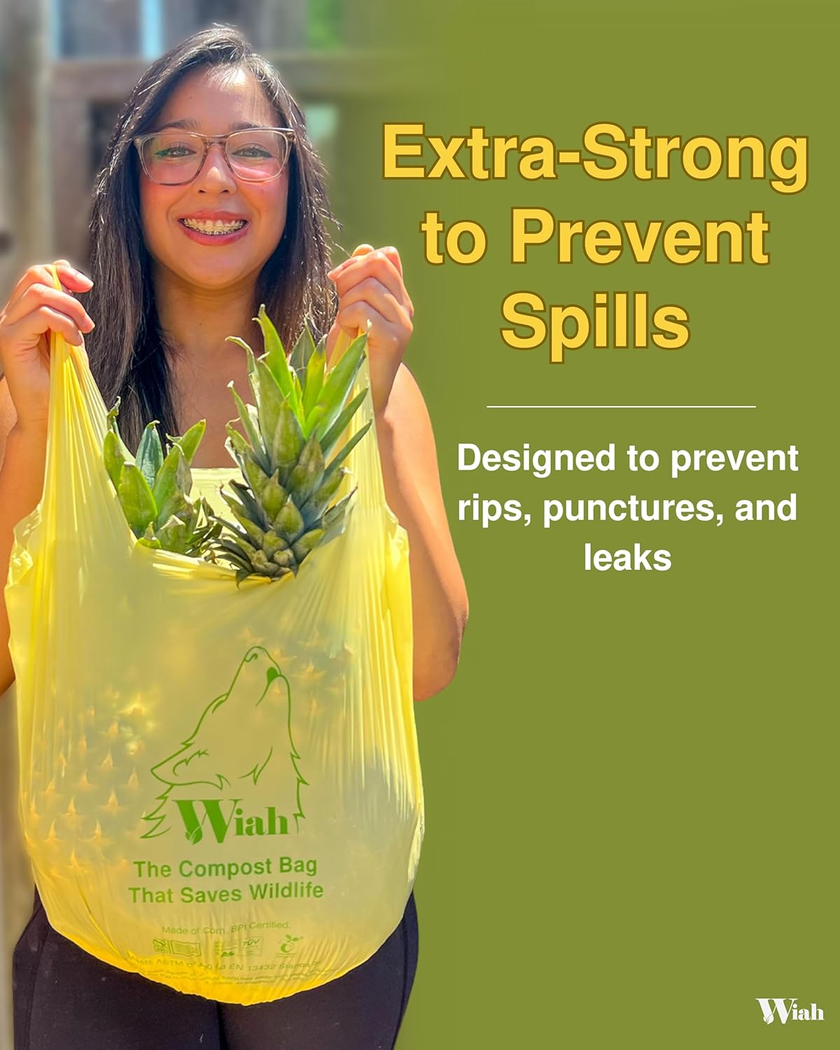 - MADE OF CORN. Unlike plastic bags that pollute our Earth, Wiah small kitchen compost bags are made from corn, a renewable resource. When discarded in an active compost environment, our compostable garbage bags break down in 3-6 months, supporting the health of our ecosystems.