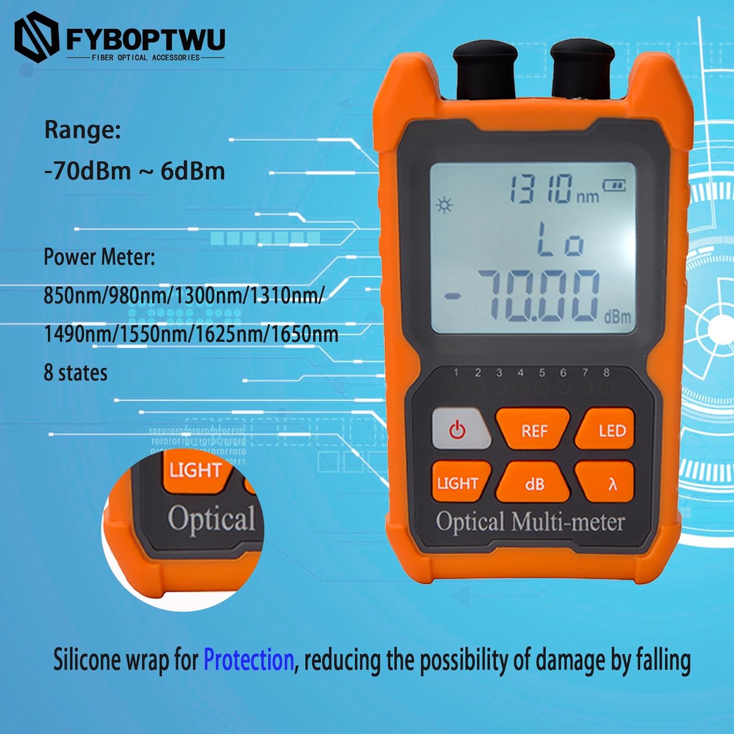 - 【8 Standard Measurement Wavelengths】850/980/1300/1310/1490/1550/1625/1650nm, Test (-70) dBm ~ (+6) dBm