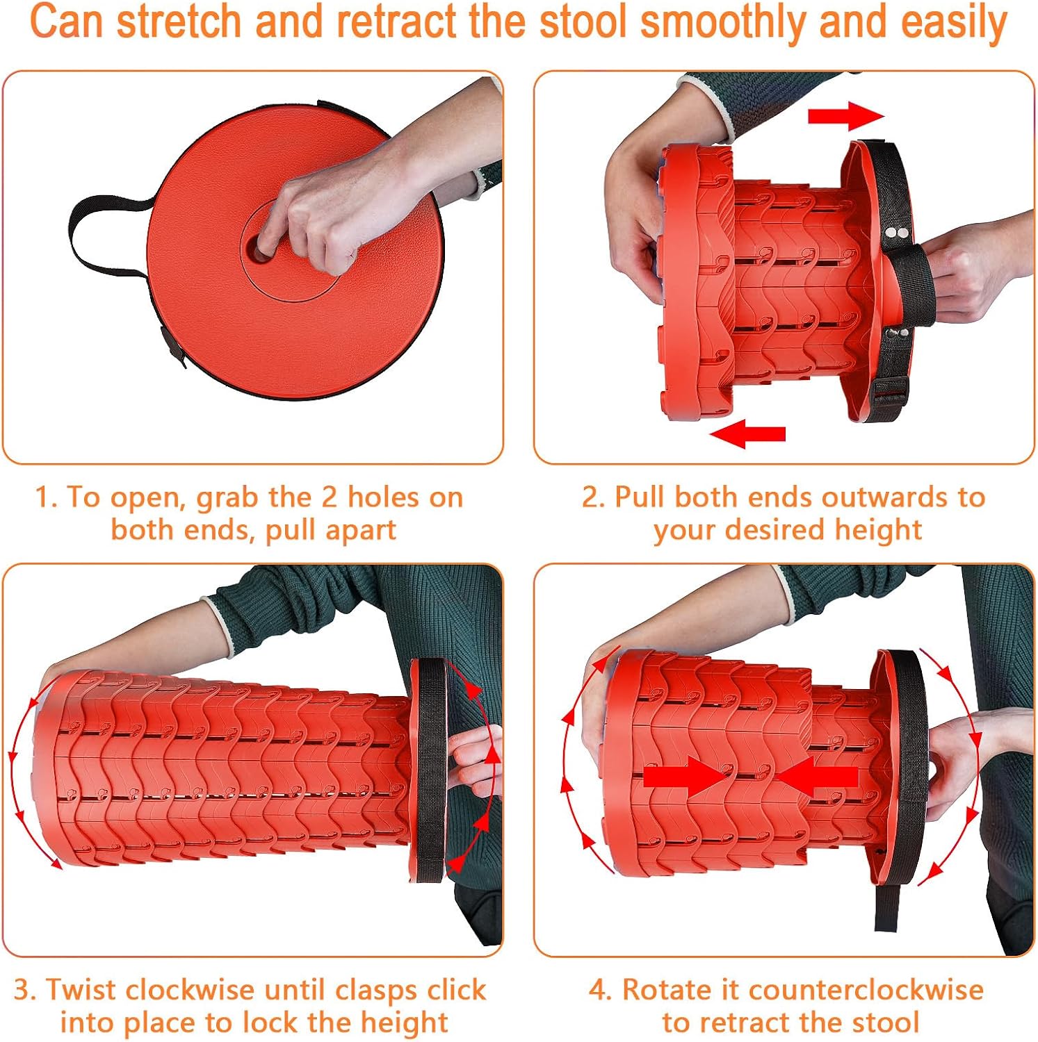 - STRETCH AND RETRACT SMOOTHLY AND EASILY: Benefiting from the fish scale design and our high precision production equipment, scales interlamellar spacing is kept 0.1mm. Make sure the stool’s stretch and retract smoothly and easily. You can open and close the stool in just seconds.