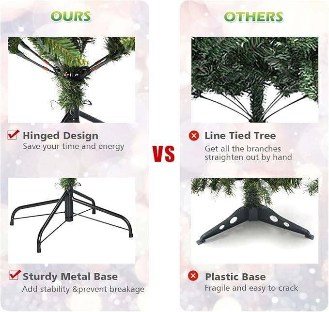 - Hinge Design for Easy Assembly - Effortlessly assemble, dismantle, and store our Christmas tree with the help of its 3 hinged sections and sturdy metal base. This user-friendly design ensures a hassle-free experience. Enjoy the convenience of completing the assembly of this tree with just a few simple steps.
