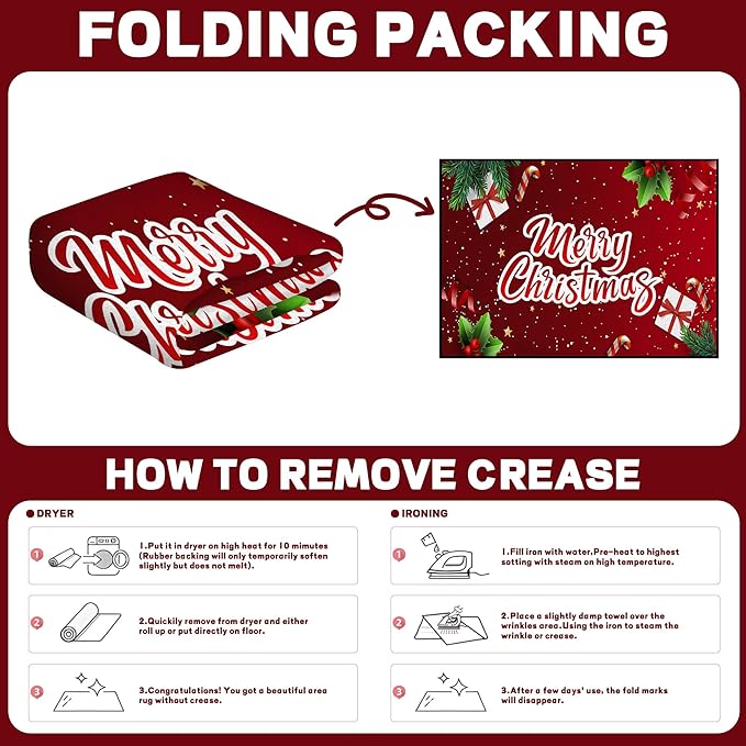 - [ANTI-SLIP BOTTOM]: Small anti-slip grip dots at the bottom of the Merry Christmas Rug, which helps prevent it from sliding on your floor. Non-slip, non-fading, non-shedding, water-absorbing, durable.