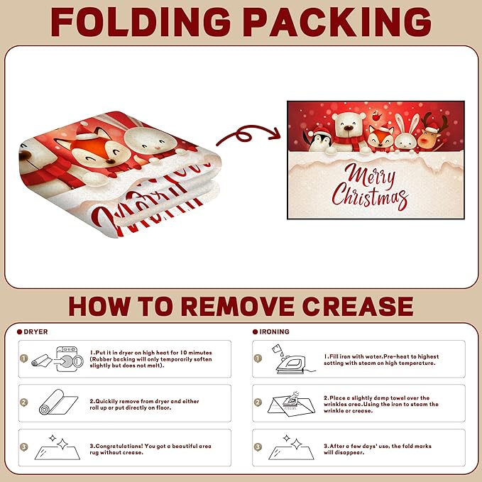 - [Decent size]: the Christmas Rug is 47*71 inch(120X180cm), neither too big nor too small, great size for creating a cozy area,bedroom doormat, etc