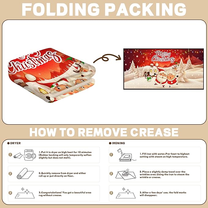 - [ANTI-SLIP BOTTOM]: Small anti-slip grip dots at the bottom of the Merry Christmas Rug, which helps prevent it from sliding on your floor. Non-slip, non-fading, non-shedding, water-absorbing, durable.