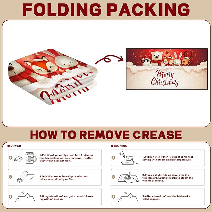 - [EASY TO CARE]: Christmas Carpets can be quite the hassle to get clean maintain. Simply machine wash or hand wash it, and hang it to dry- do not tumble dry.Stain Resistant And Fade Resistant That Making Them The Perfect Choice For Busy Households And Those With Children And Pets.