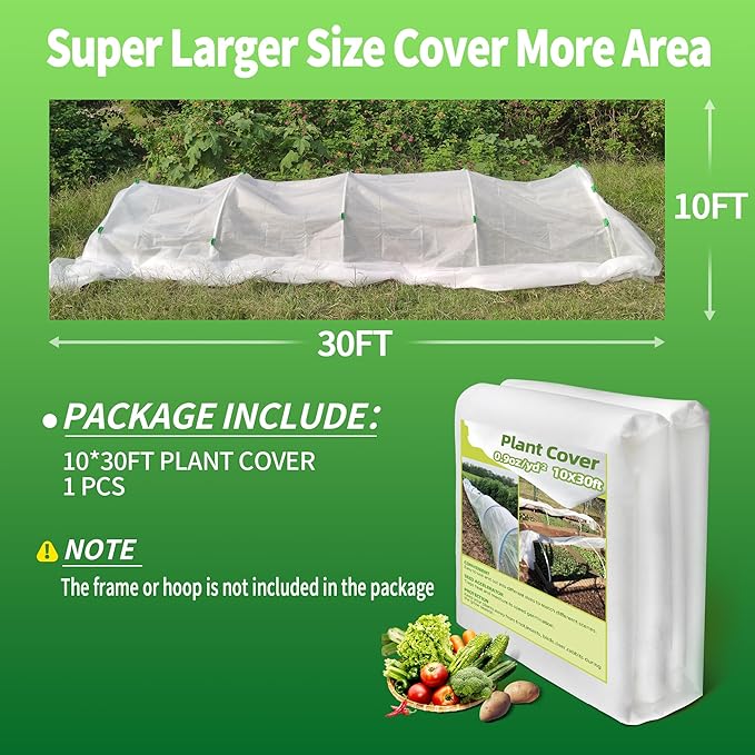 - Extra Large Size Cover More Area - Our frost blankets for outdoor plants measures 10x30 feet and are sized to cover a larger area. You can cut the winter plant covers freeze protection to the right shape and size to ensure your plants are fully protected. You can use frost covers for outdoor plants to cover broccoli, cabbage, lettuce, spinach, radishes, cauliflower, green beans, carrots, beets, onions, blueberries, raspberries and other plants