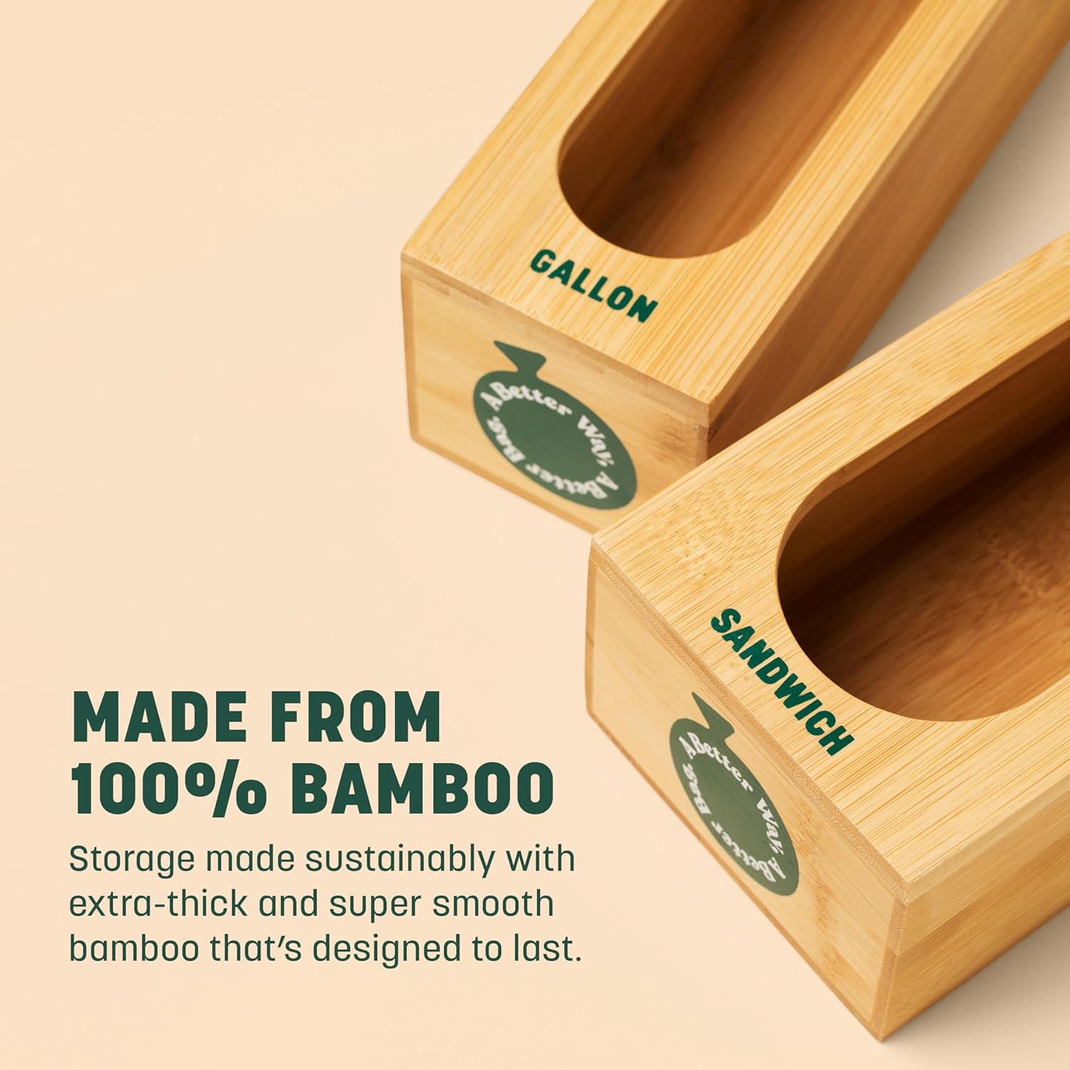HoldOn Bamboo Gallon Bag Holder - Bamboo, Simple, Individual Organizer, Extra Thick - Food Storage Bag Holder, Space Saving, Renewable Material, Clutter Free