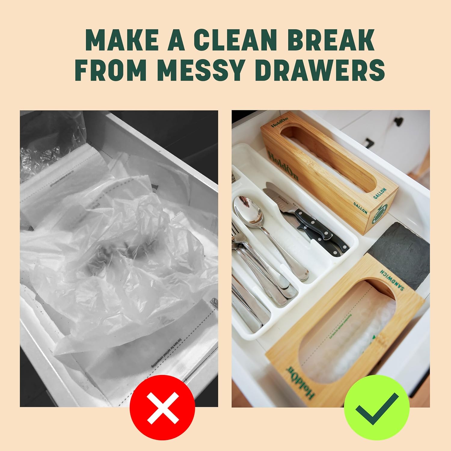 - HOLDON QUALITY YOU CAN TRUST: Specifically crafted to fit HoldOn sandwich zipseal bags, this organizer guarantees a perfect match for your storage needs. The precise design ensures that your bags fit snugly, preventing any accidental spills or messes. With HoldOn's reputation for quality, you can rest assured that your zipseal bags will be neatly stored and easily accessible whenever you need them.