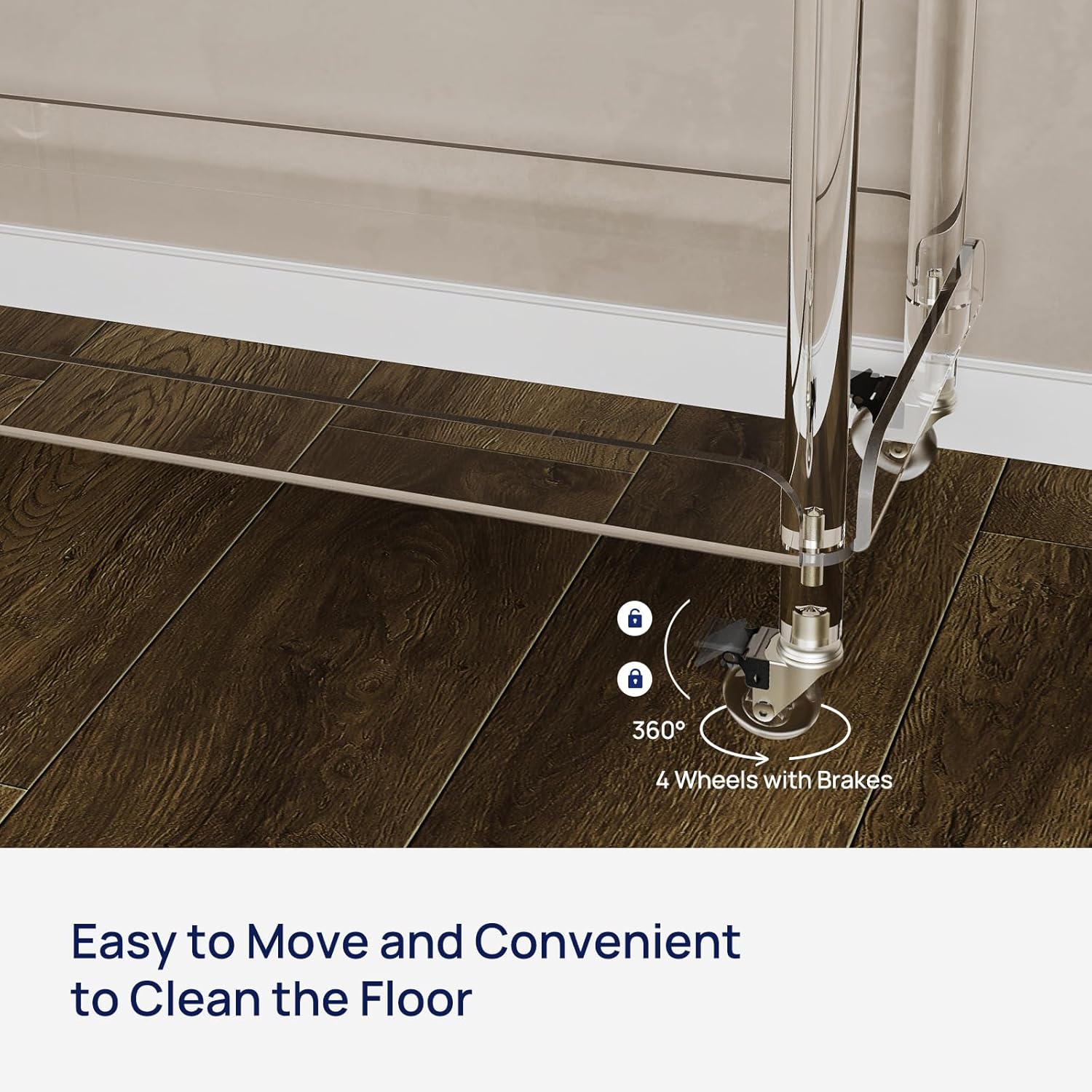 - Mobile Flexibility: Equipped with 4 lockable wheels (Lift the mechanism on the wheels to unlock and press to lock), moves easily across your carpet or floor and convenient to clean the ground.