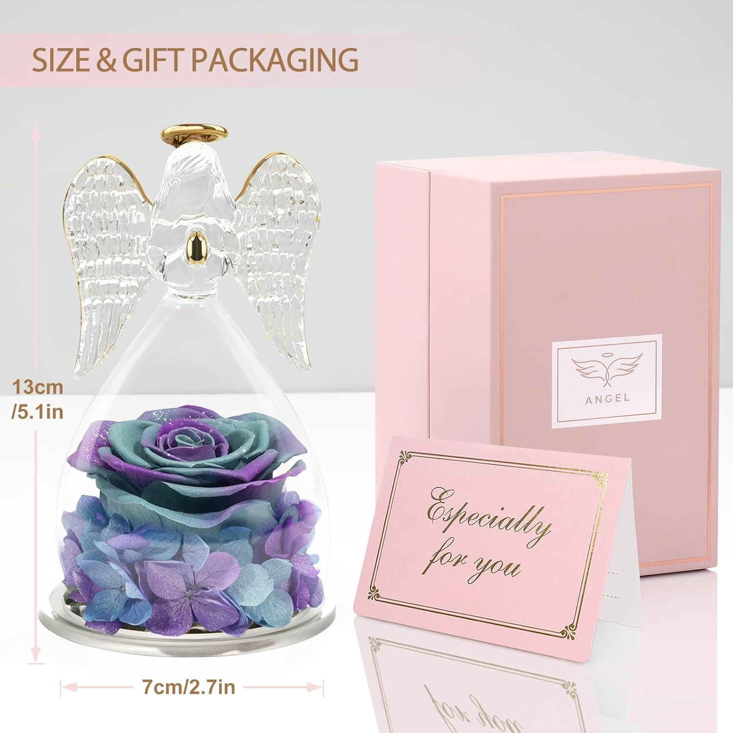 - The package contains 1x Angels Rose, 1x Protection Gift Box and 1x Greeting card.