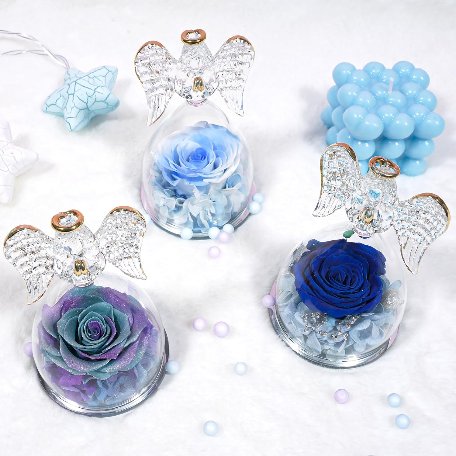 - Our angel figure forever real rose is made with unique preservation process, which can last 3-5 year, you just need to put the angel preserved flowers rose gift in a cool place, no need watering and sunlight.