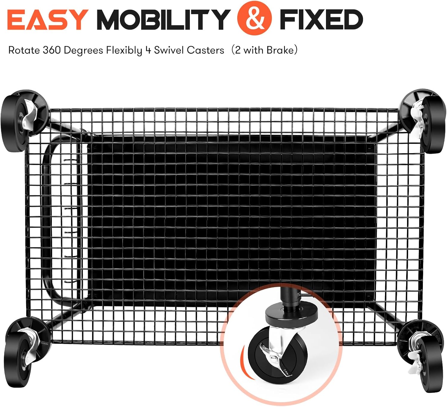 - 360ยฐ Silent Casters: The 2 tier rolling storage cart is designed with 4 silent casters; it transports heavy loads swiftly and smoothly. include 2 fixed locks wheels can hold the wire utility cart firmly in place for added stability.