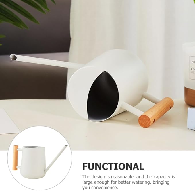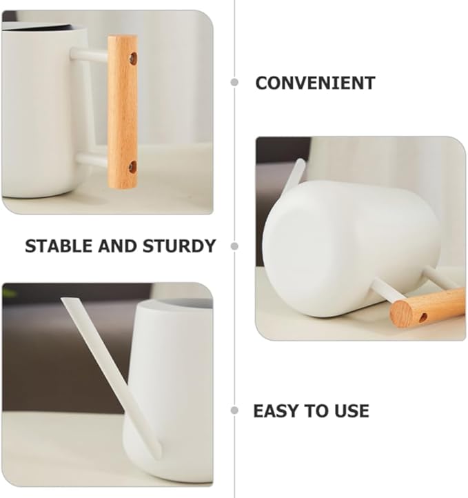 - COMFORTABLE WOODEN HANDLE - The indoor watering can has a round comfortable wooden handle that is easy to grip and won't cut your hands. Ergonomically designed wooden handle that fits your hand better than home plant watering devices with metal handles. Make watering your houseplants easy and enjoyable!