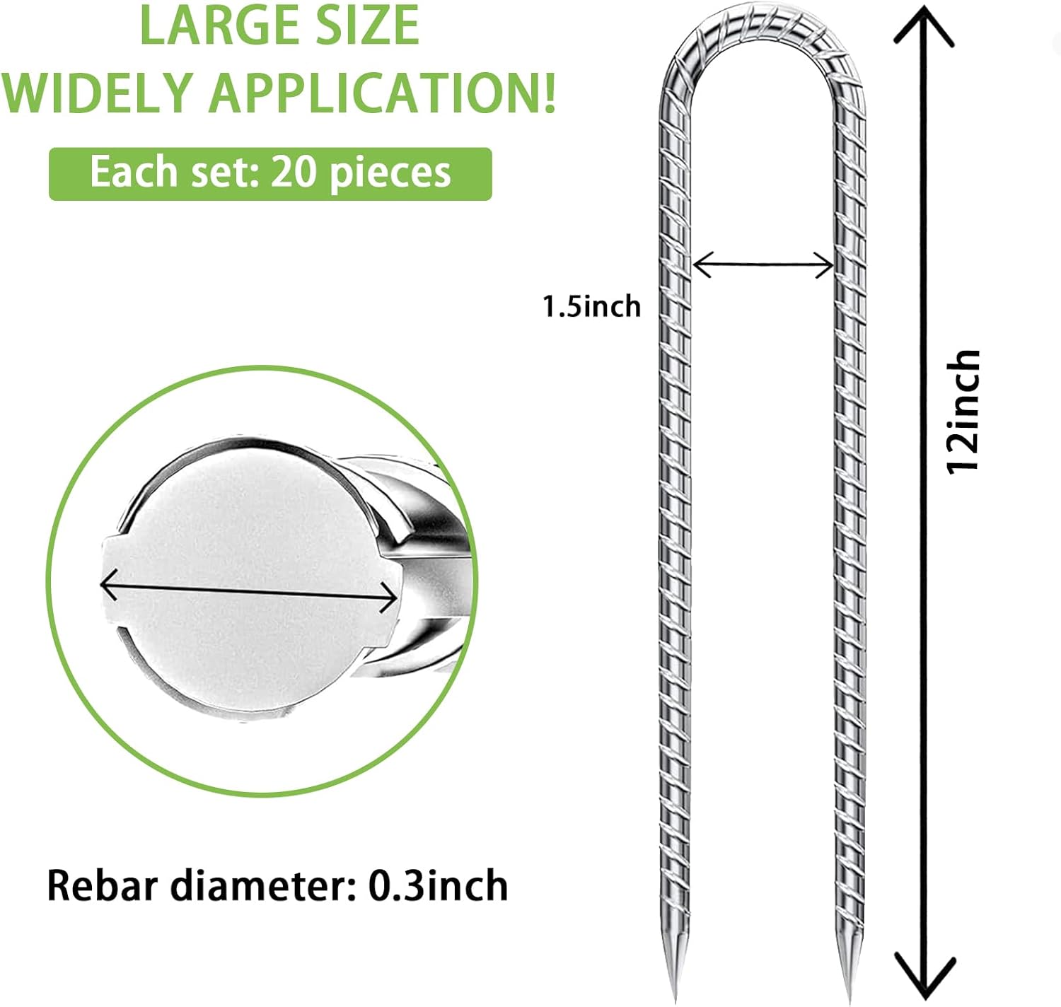Rebar-Stakes-12-Inch-U-Shaped, Trampoline Stakes High Wind Ground Stakes Heavy Duty Galvanized Anti-Rust Metal Stakes Ground Anchors for Garden Dog Fence Chicken Coop Water Pipe 20pcs