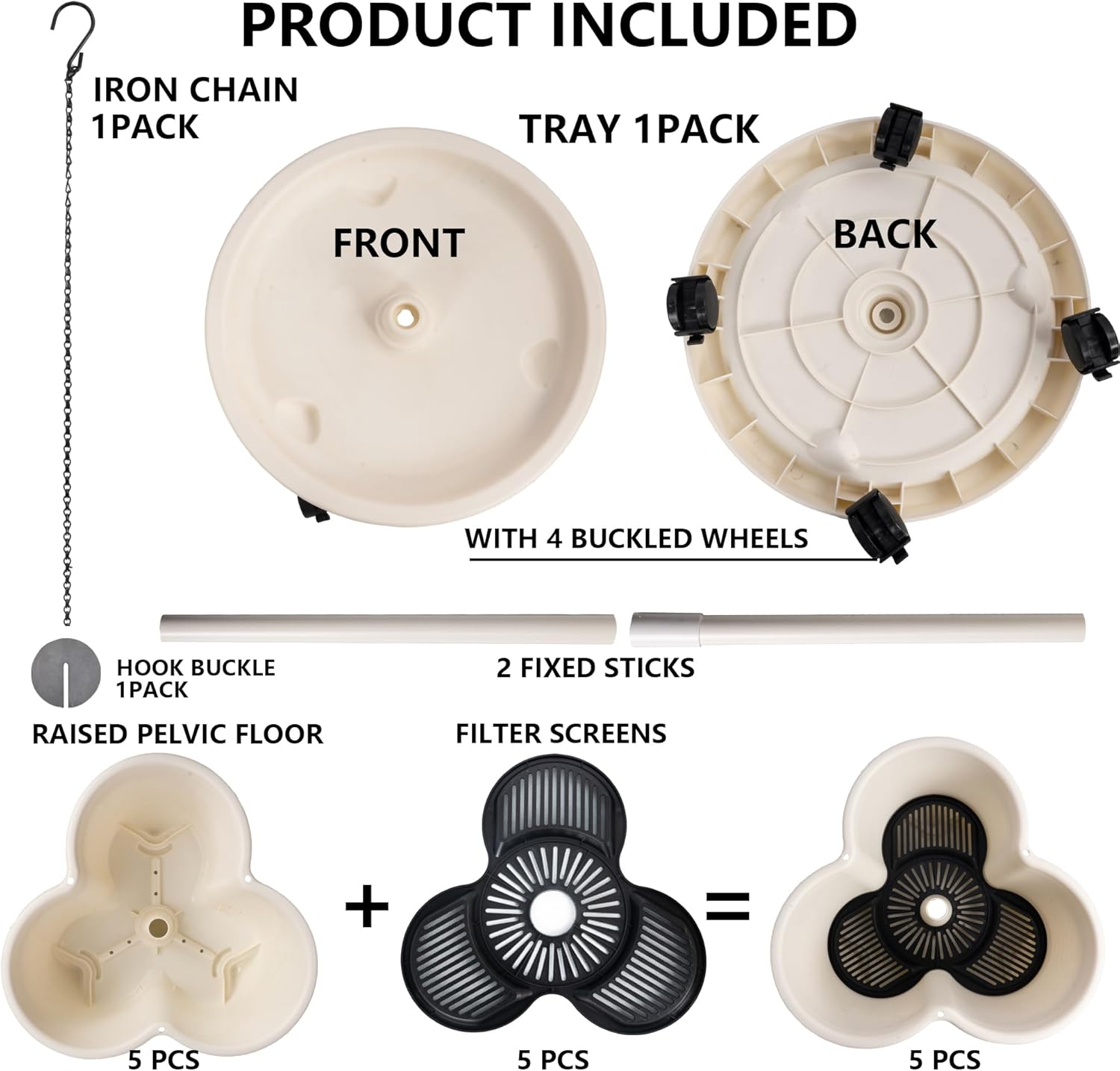 • Simplified Gardening: Each pod is 13 x 5.1 Inch (LXH), and the tray height is 3.54 Inch(H), filter tray is 12 Inch, and total height is 2.52 FT(H), iron chain is 37.5 inch.This planter allows for versatile stacking options: 2, 3, or even 4 tiers high. Additionally, it can be suspended using chains or positioned on a cylindrical pole.
