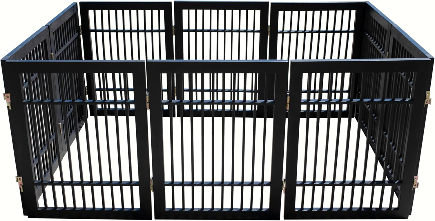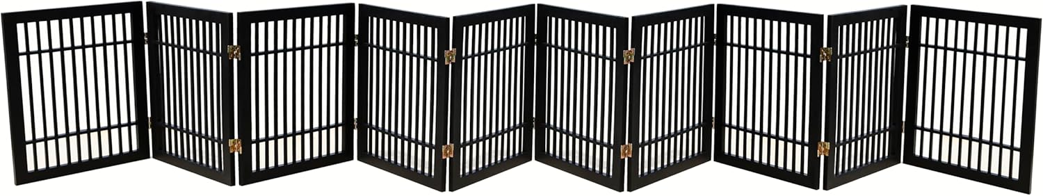 Pet Dog Gate Strong and Durable Freestanding Folding Acacia Hardwood Portable Wooden Fence Indoors or Outdoors by Urnporium (Black Pet Gate, 10 Panel 24" Tall)