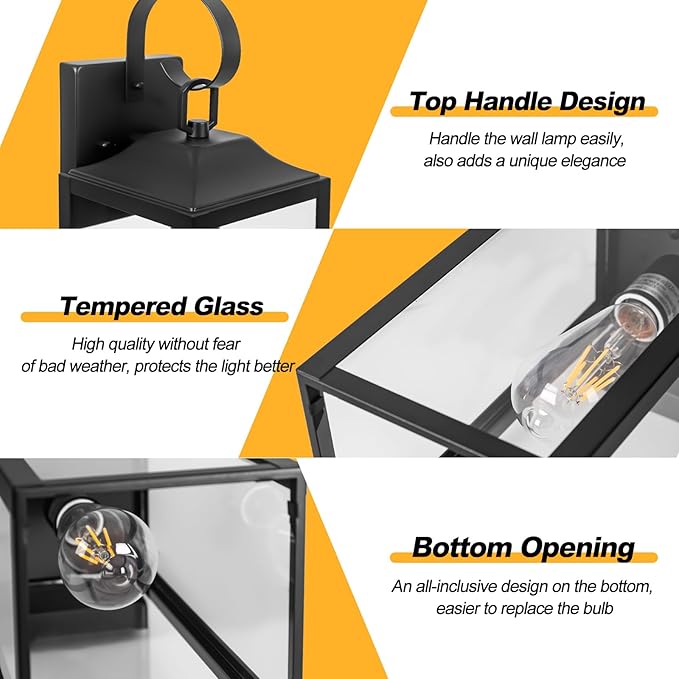 - 【Classic & Practical Design】This yolsunes outdoor wall light features 4 clear glass panes, which can emit bright light and illuminate the place at maximum, creating a beautiful lighting atmosphere outside or inside your home. The design of the top handle makes wall light fixture look less rigid and add a modern flair. The outdoor wall light is open at the bottom for easy light cleaning and bulb replacement. The clear lamp shade can showcase your bulb of choice to create a stunning light outside your home.